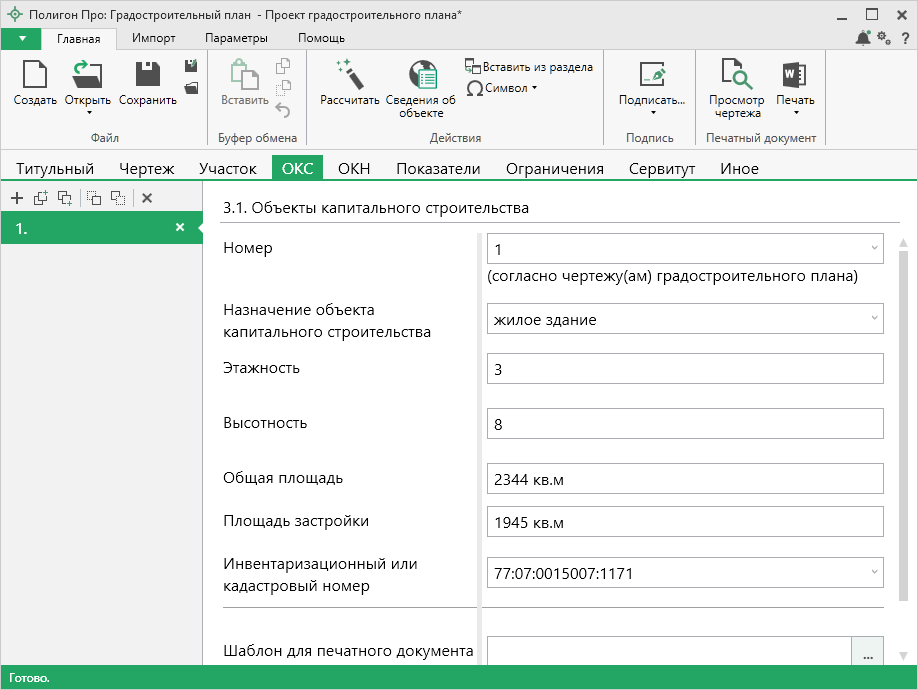 Данный раздел является множественным. Для каждого объекта капитального строительства (ОКС), расположенного на участке, необходимо создавать отдельную вкладку раздела.