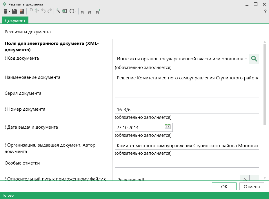 Чтобы приложить образ документа, в поле "! Относительный путь к приложенному файлу с изображением/Имя файла с изображением" нажмите