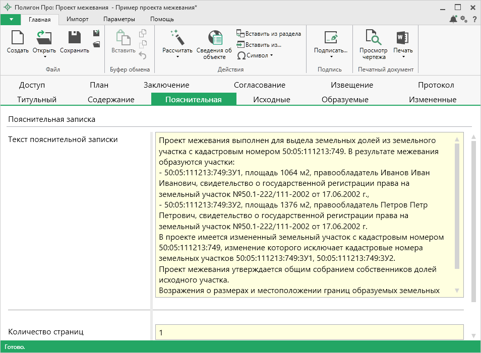 В программе предусмотрена возможность автоматического заполнения этого раздела примерным текстом, в котором будет указана исходная информация.
