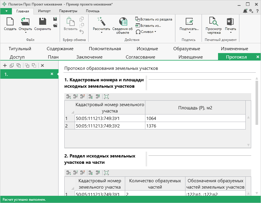 В разделе "Протокол" формируется протокол образования земельных участков.