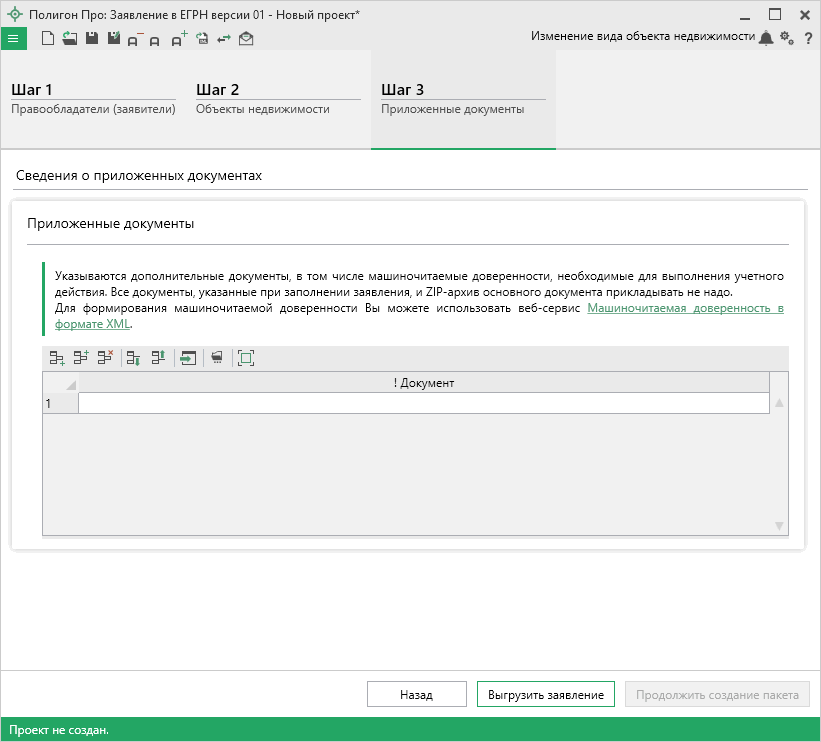 Последний шаг предназначен для описания документов, которые необходимо приложить.