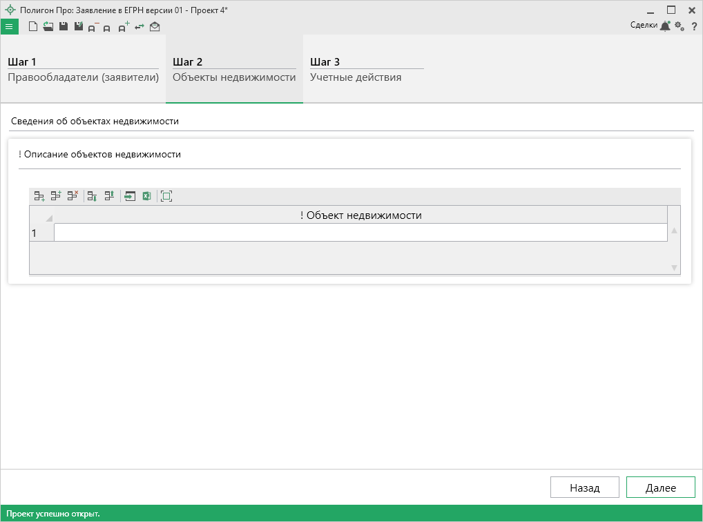 Второй шаг предназначен для ввода сведений об объектах недвижимости.