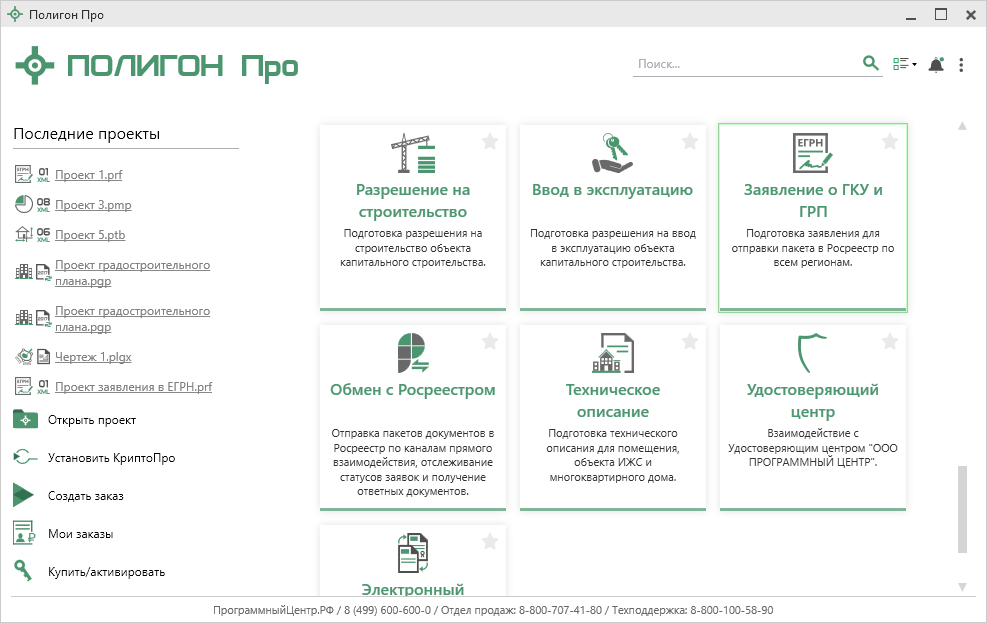 Модуль "Заявление о ГКУ и ГРП" предназначен для подготовки заявления на ГКУ и/или ГРП для отправки пакета в Росреестр.
