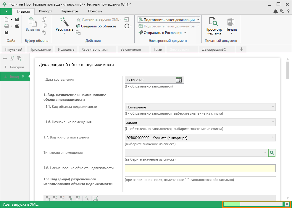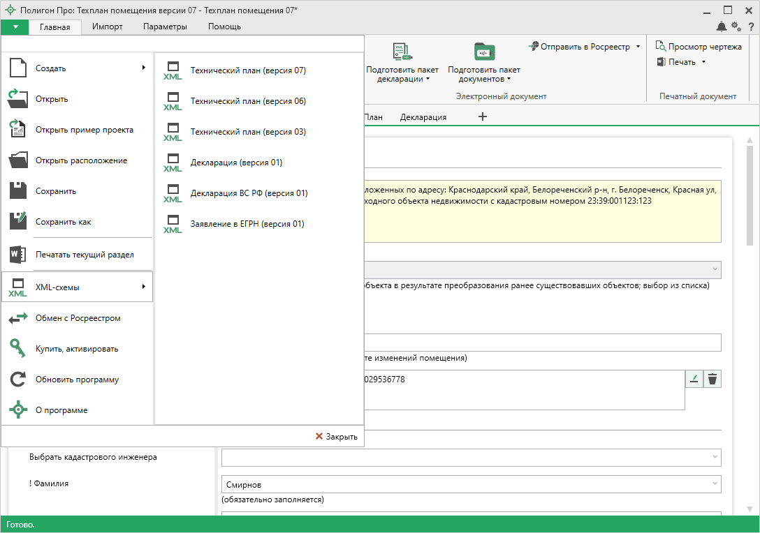 Чтобы подготовить пакет декларации для передачи в Росреестр, нажмите кнопку