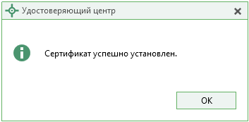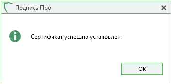 2. Программа сообщит о том, что установка сертификата прошла успешно: