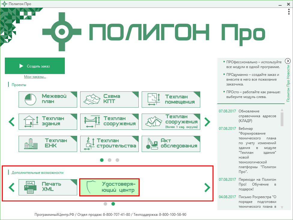 Запустите программу "Полигон Про" и в разделе "Дополнительные возможности" откройте программный модуль -