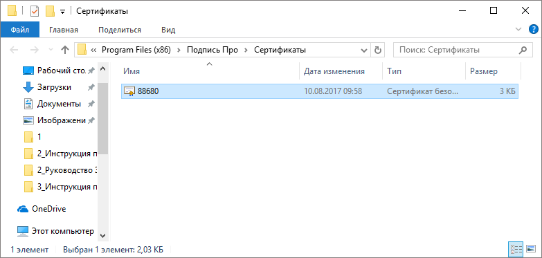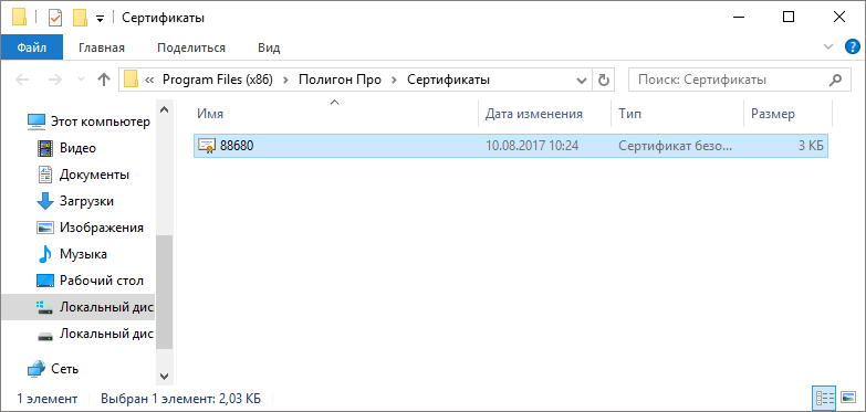 При нажатии на кнопку "Нет" будет открыта папка с сохраненным сертификатом.