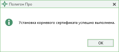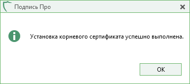 3. Программа сообщит о том, что установка корневого сертификата прошла успешно: