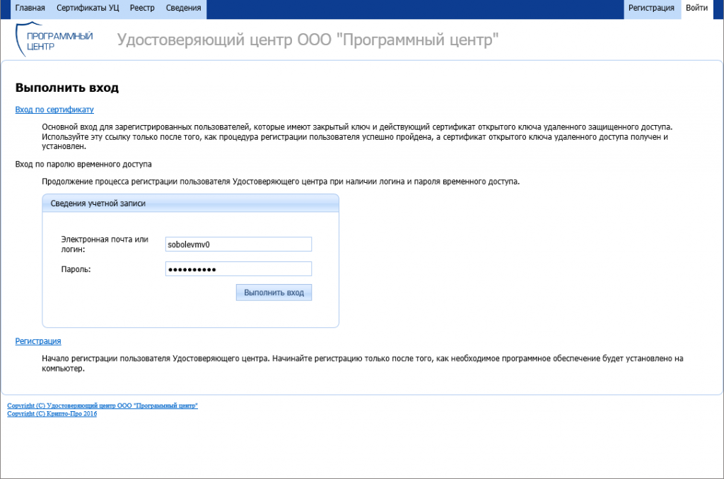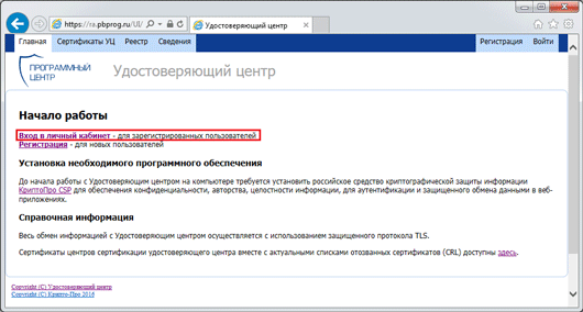 Для этого необходимо зайти в личный кабинет на сайте удостоверяющего центра (УЦ):