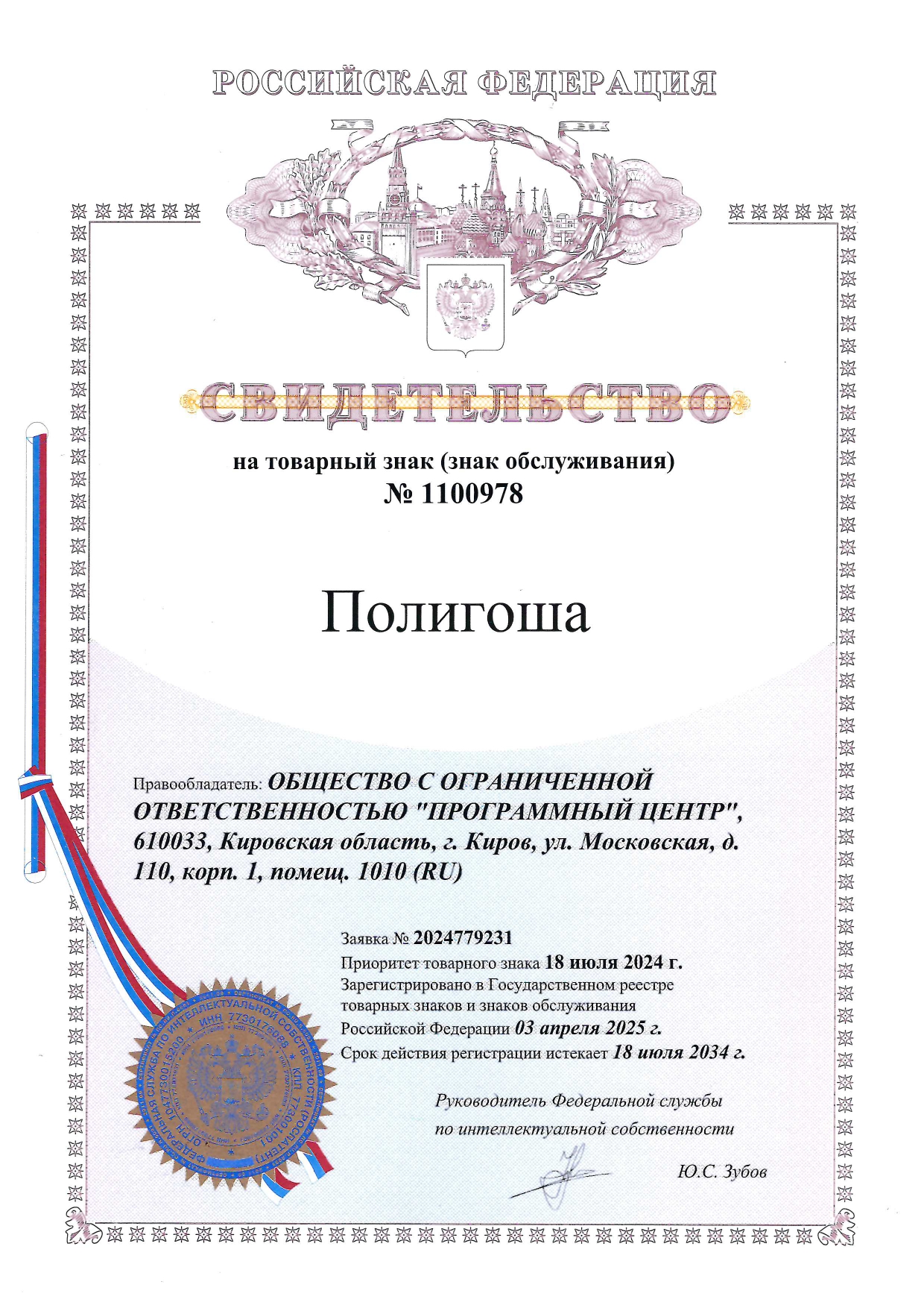 Разрешает ООО «Программный центр» встраивать в разрабатываемые информационные системы средства криптографической защиты и выдавать электронные подписи.